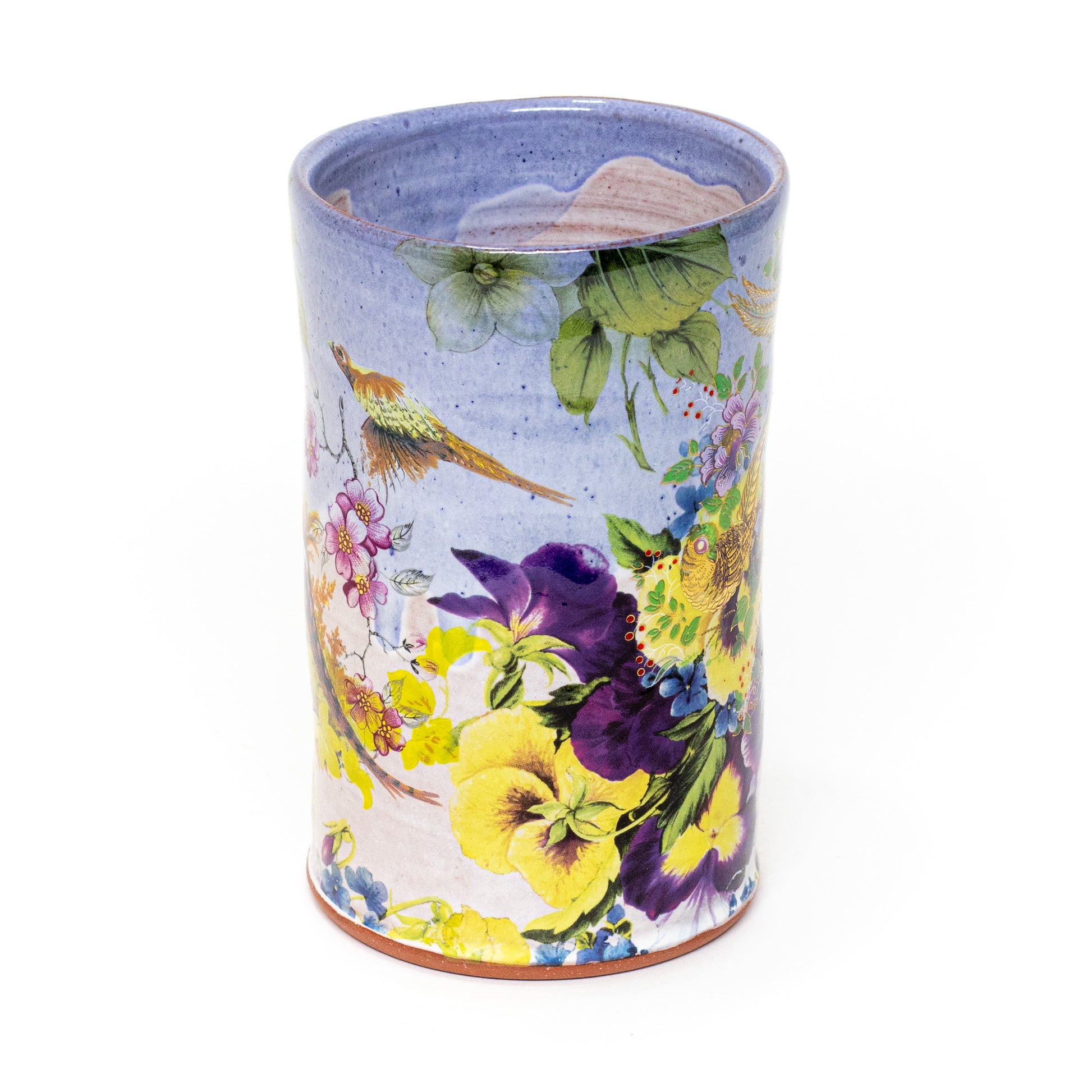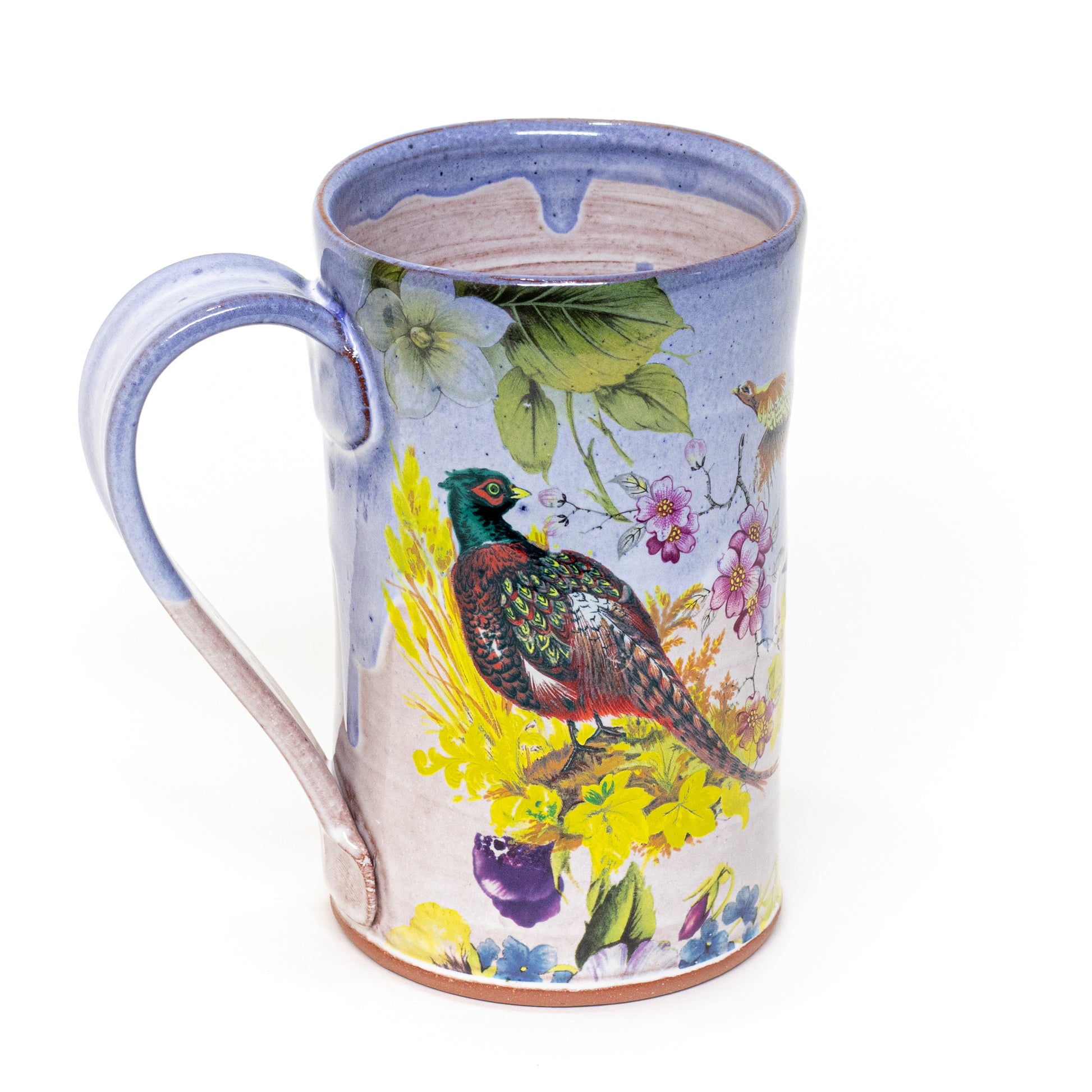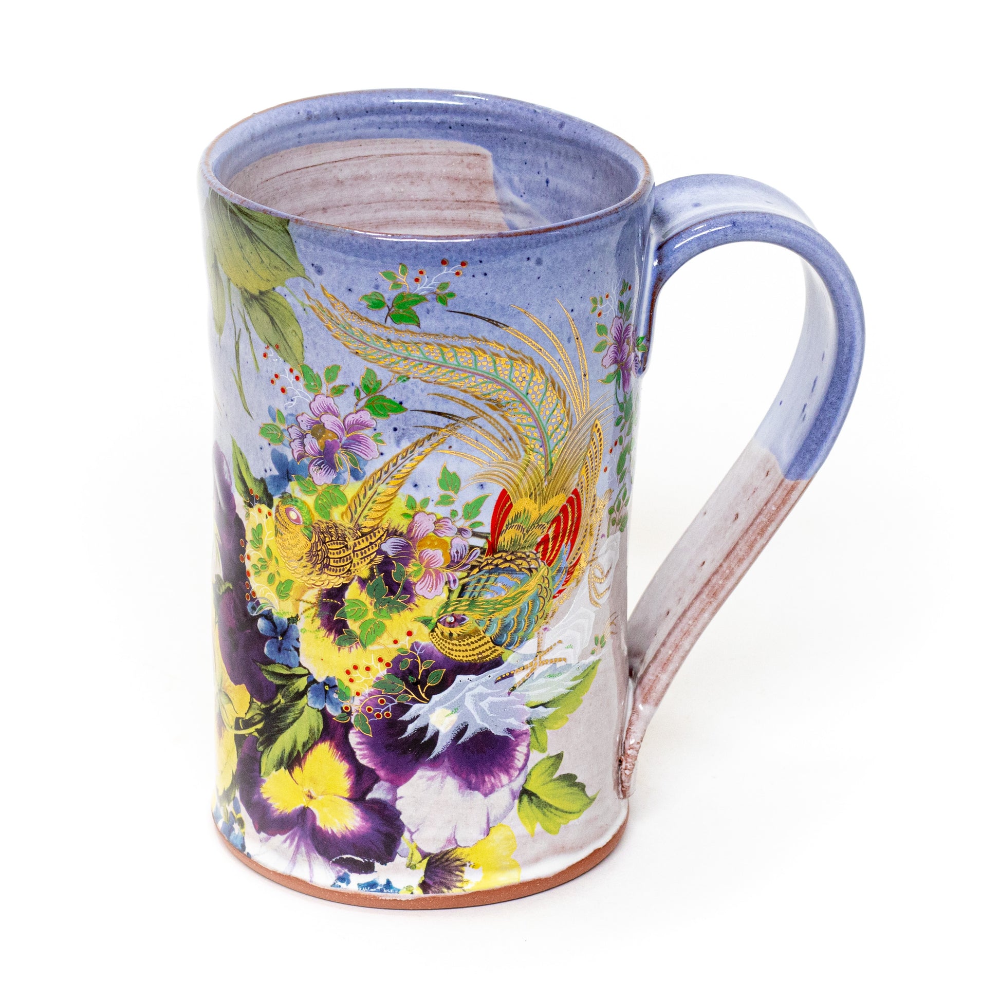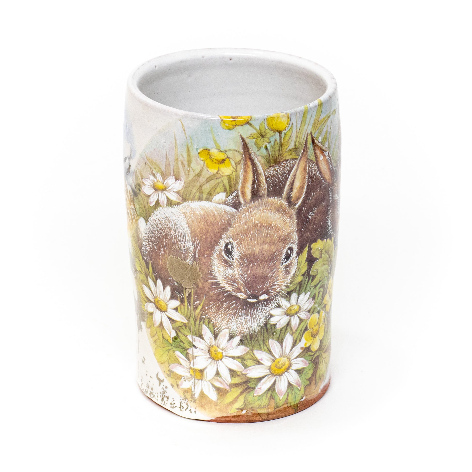 Red stonware beer mug glazed and decorated with ceramic decals. Dimensions approx. 5.5" x 5.5"