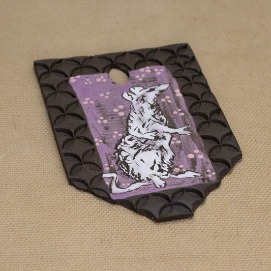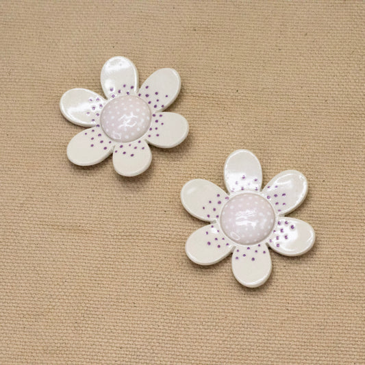 2" Wallflower (6 Petal White & Purple Dots) by Jennifer Fujimoto
