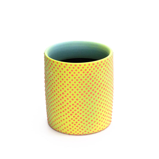 Yellow Press-Handled Polka Dot Bluebell Mug by Caterpillar Clay