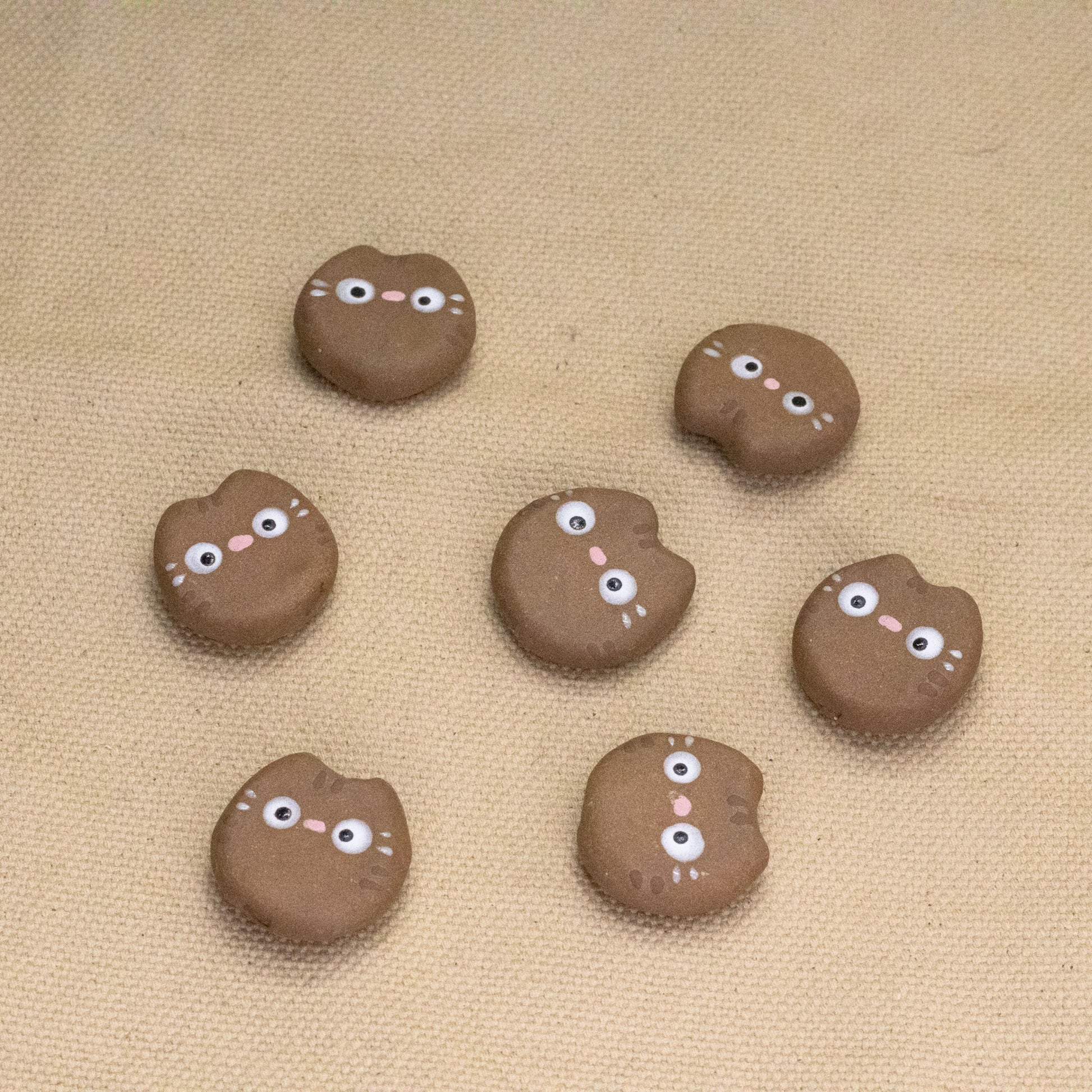 Handsculpted chocolate tabby kitty magnets. Sold individually, each measures approx. 1" tall and 1" wide.