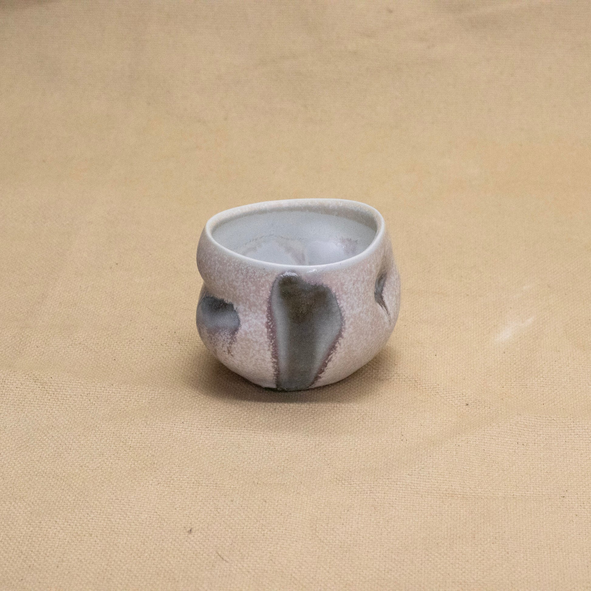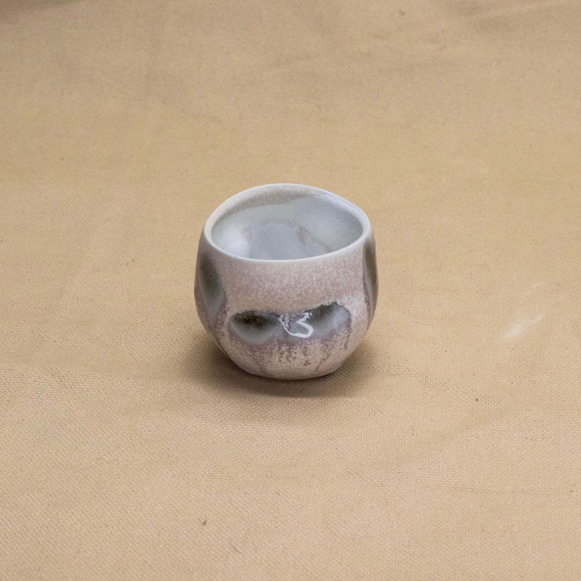 Porcelain coffee mug, fired in gas reduction to cone 10. Microwave and dishwasher safe, holds 3 oz.