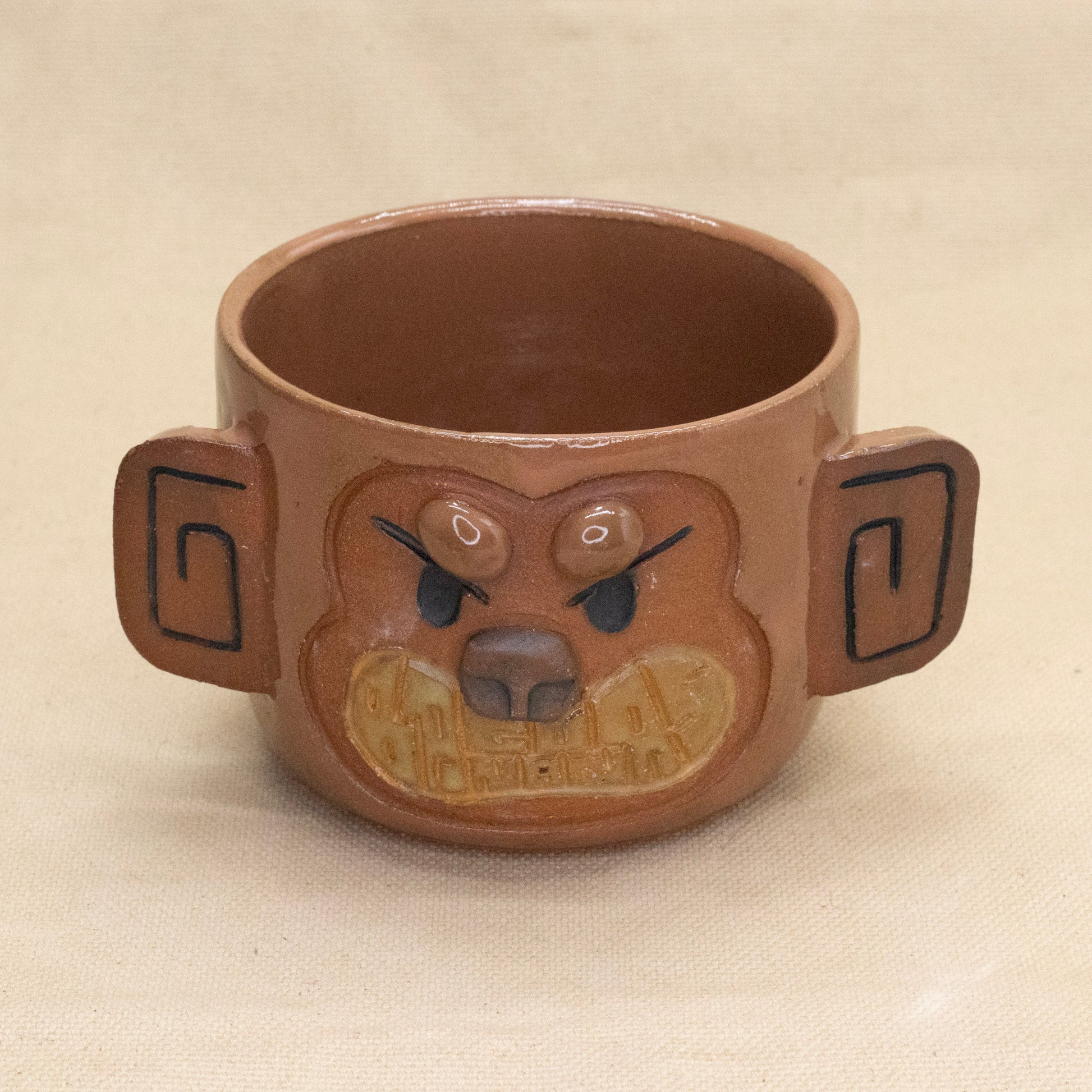 This lil angry monkey is going bananas! Dishwasher safe. Holds 16 oz.
