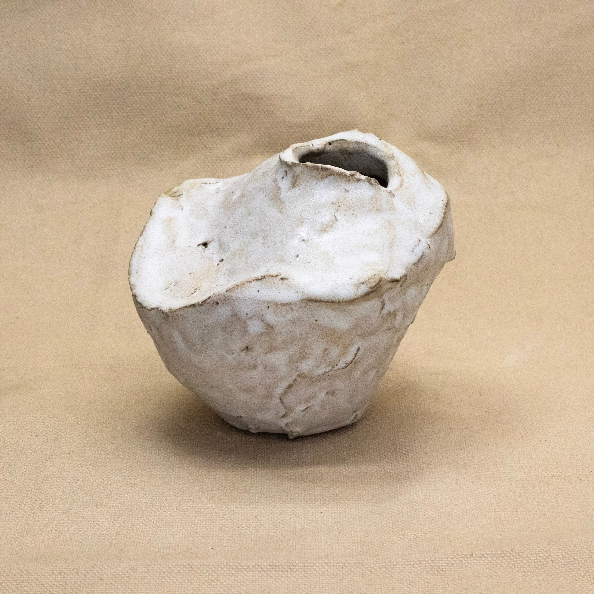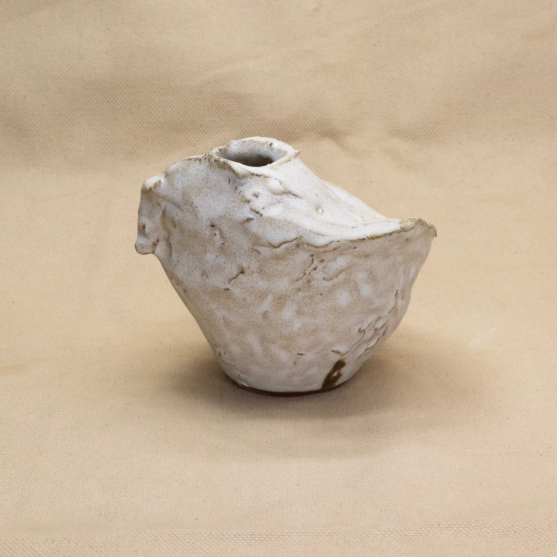 Handbuilt white vessel. Measures 4.5" tall and 5" wide.