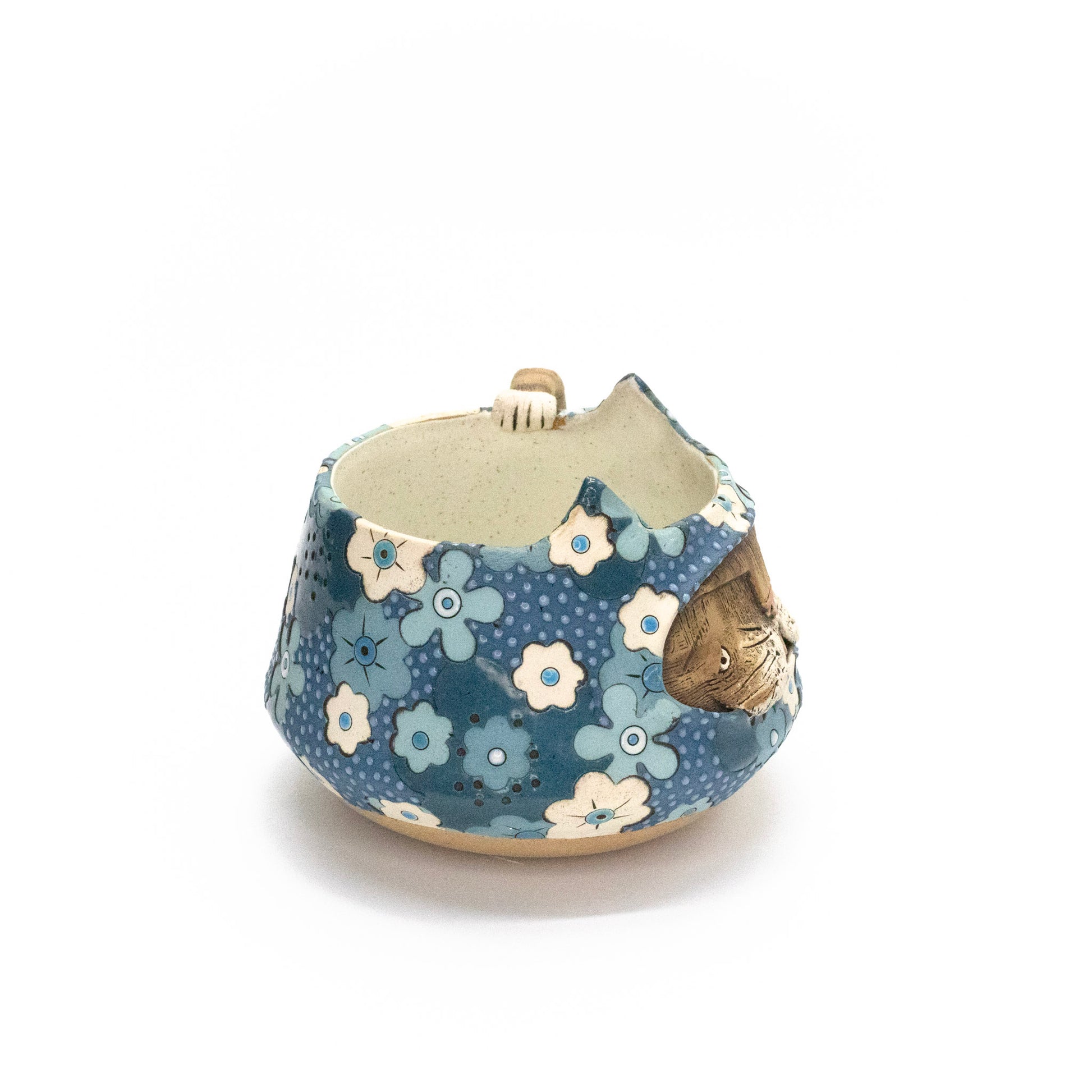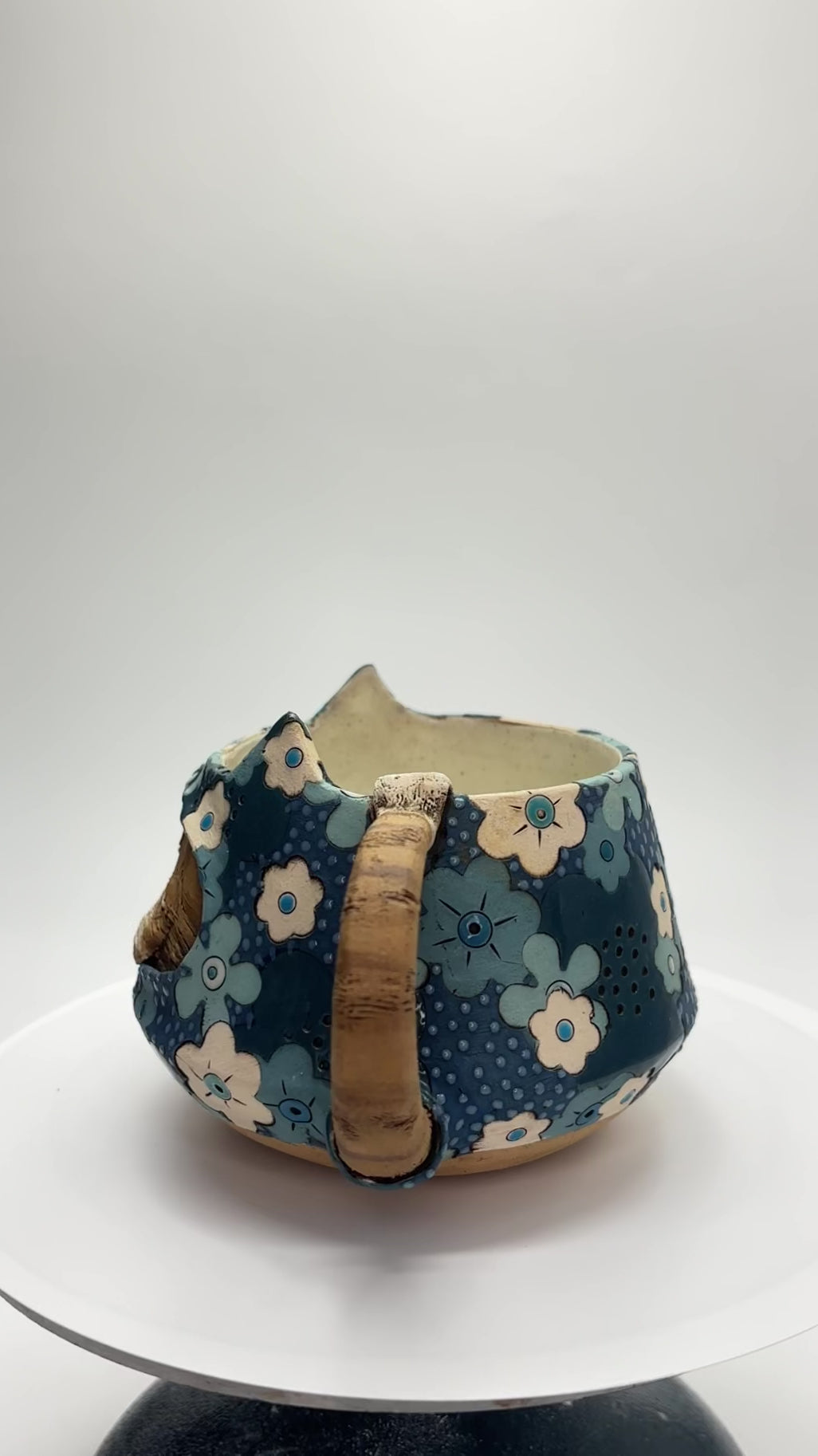 Stoneware, partially glazed on the outside and fully glazed inside with a satin speckled glaze. Dry clay areas sealed with liquid Quartz. 400ml. 9cm x 11cm