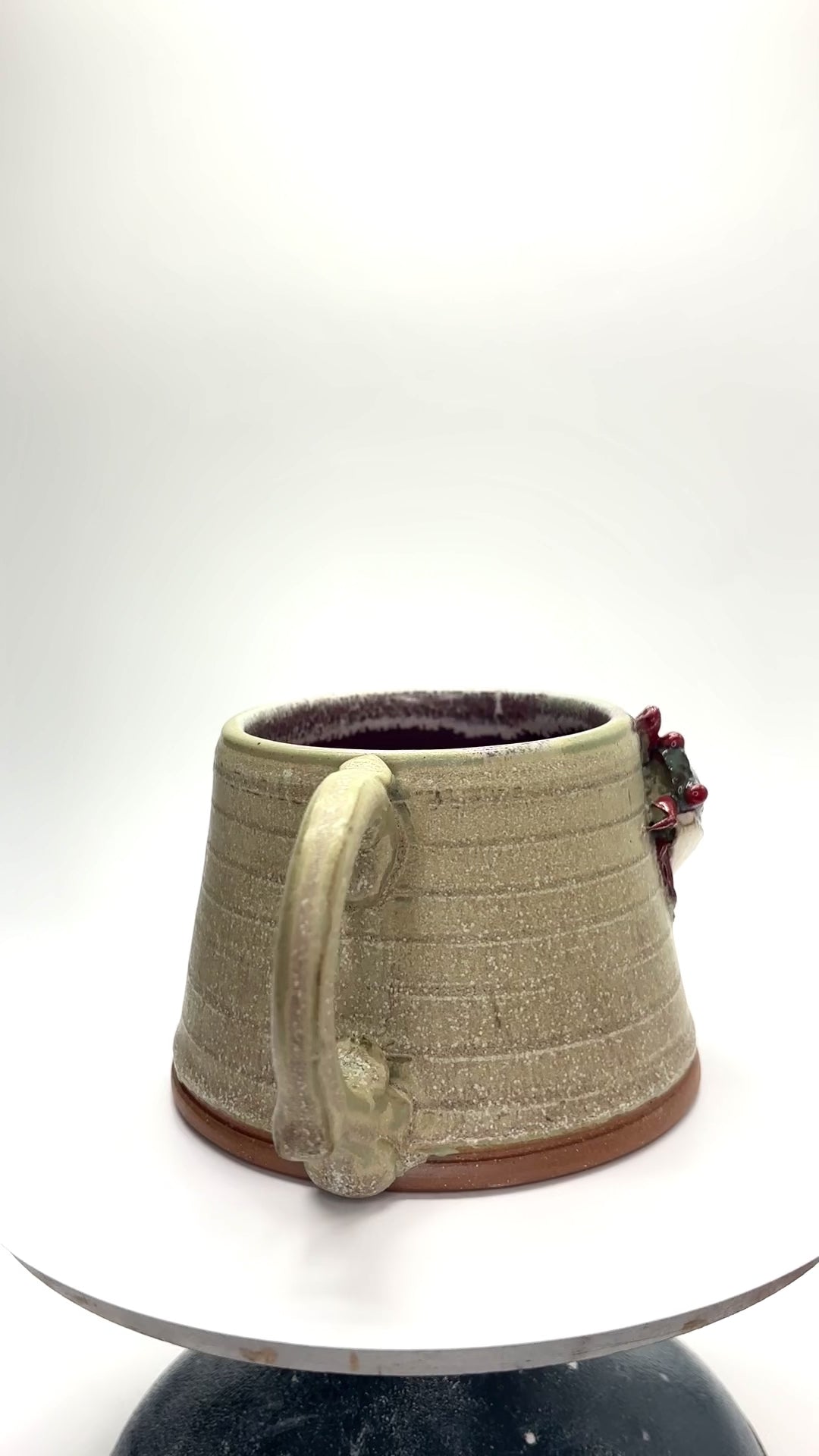 White stoneware, thrown and sculpted with a pulled handle, and fired to cone 7 in oxidation. 3x4.25x5.75" and 12oz.