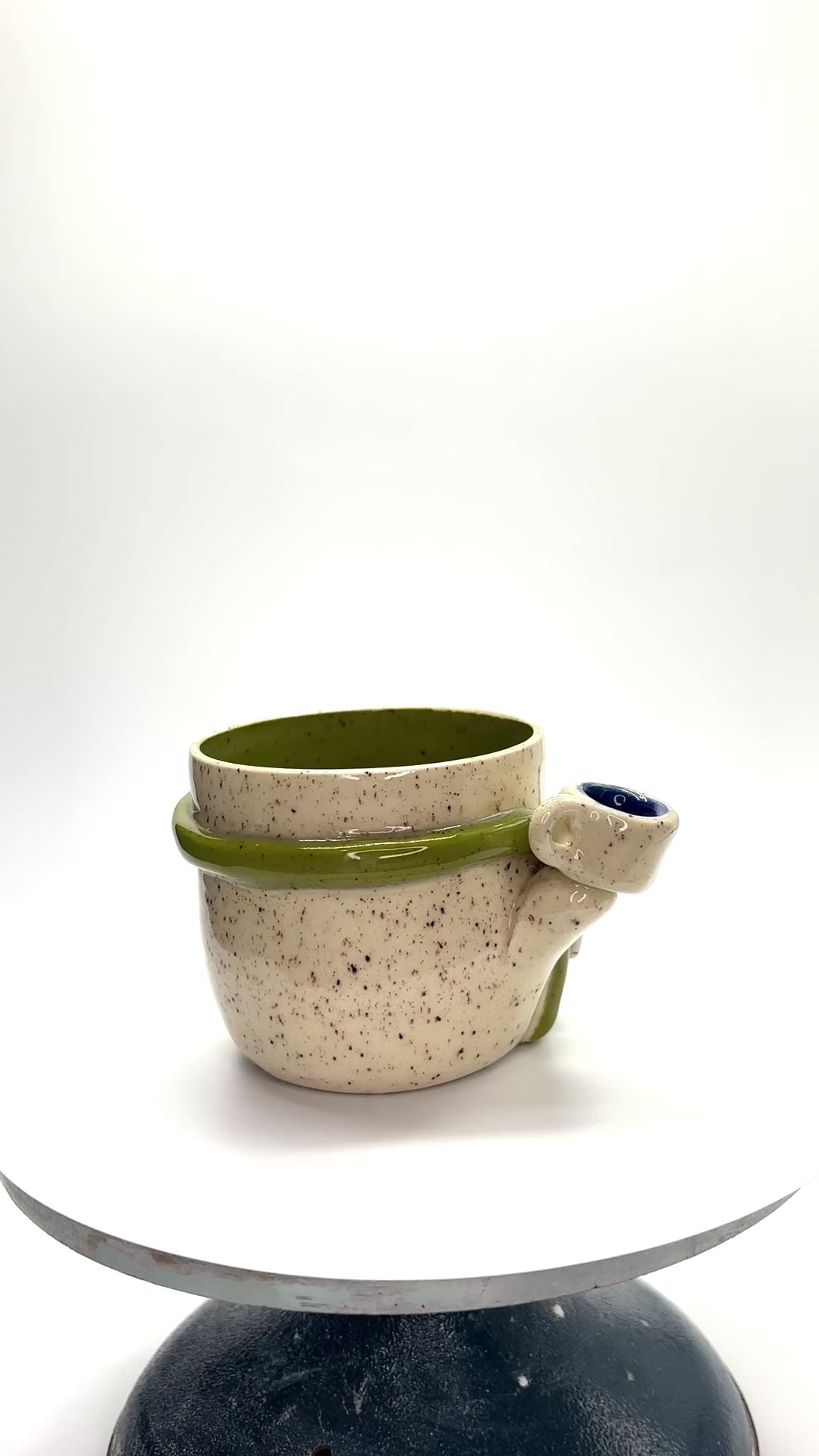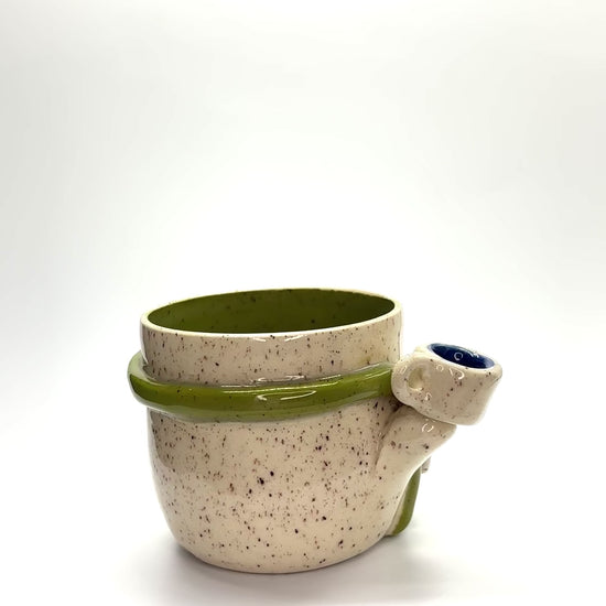 Speckled b-mix with underglaze, mid fire, 10 oz