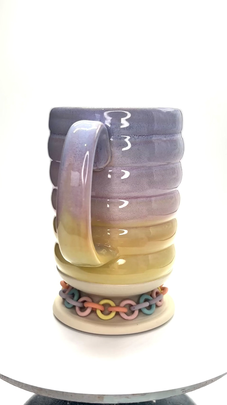cone 6 Translucent Porcelain, oxidation, wheel thrown with handbuiilt mason stain chains, 5.25"x4.5"x3.25".