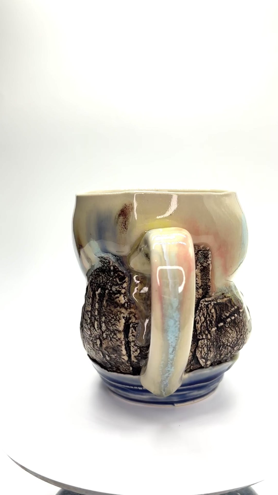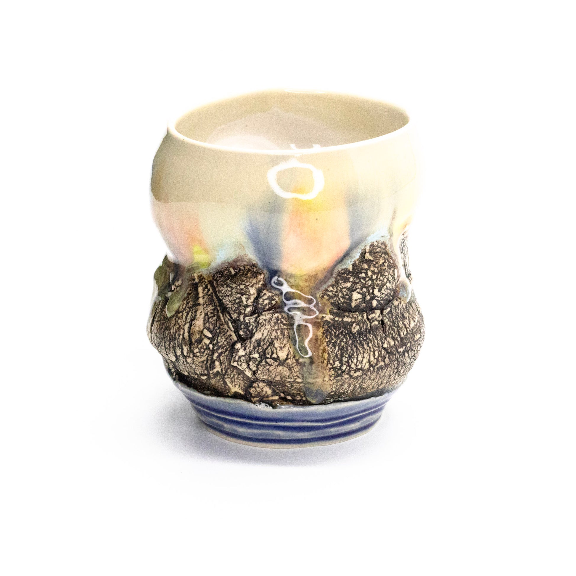 Cone 6 white clay, electric oxidation fired, slab built, height 11cm, diameter 9cm, holds 500ml to the rim