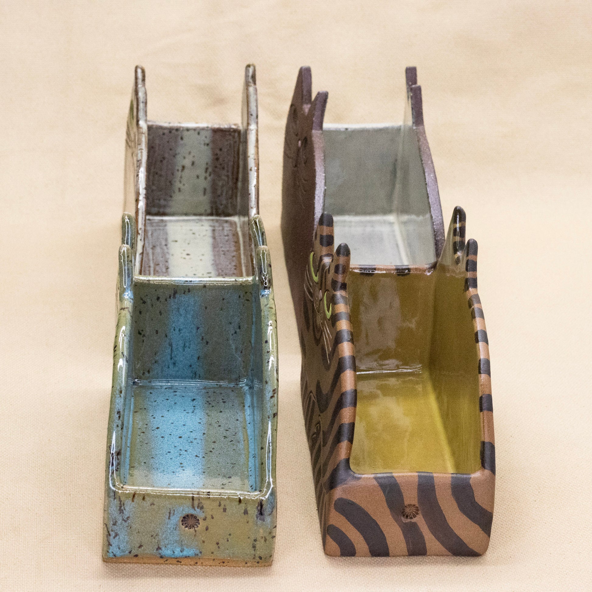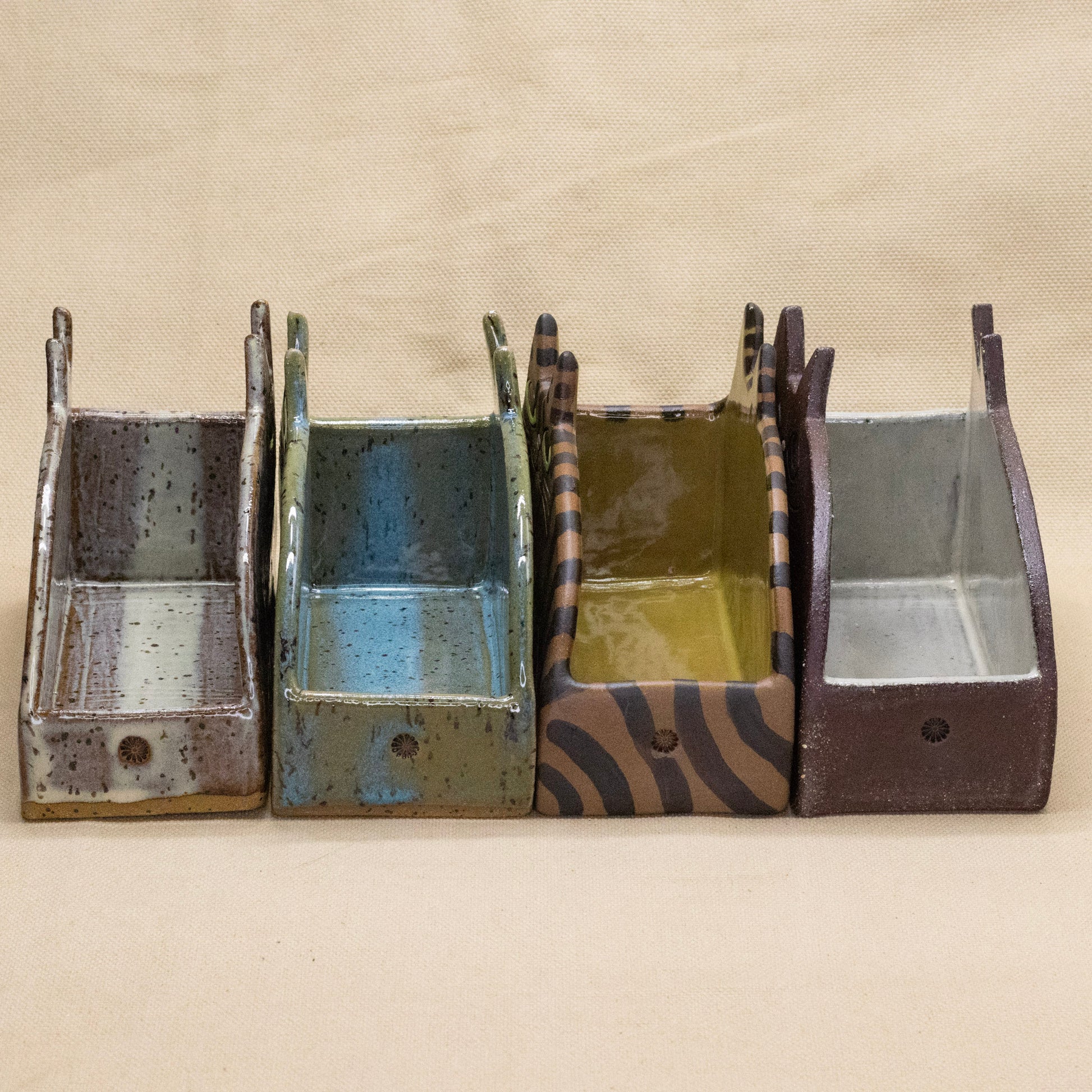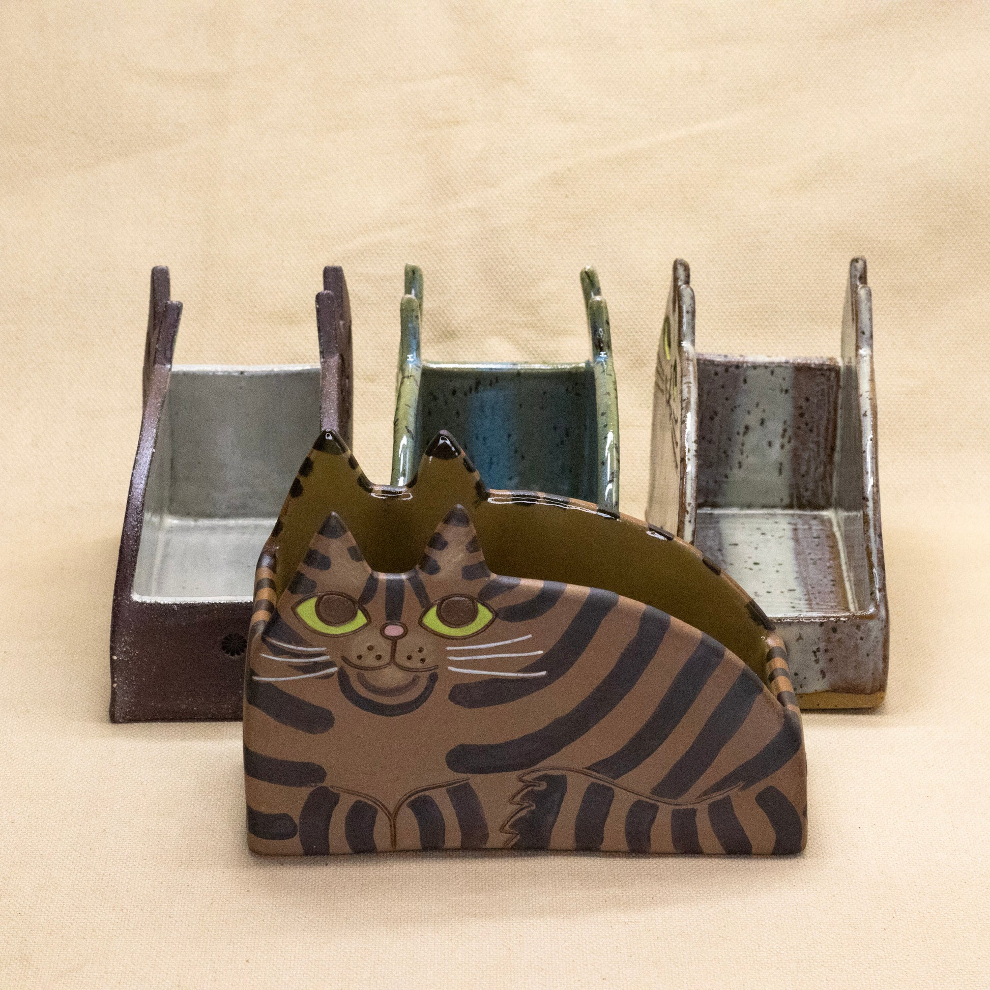 Perfect for holding napkins on your table, or papers on your desk! Each piece sold separately. Measures approx. 6.75" long, 4.5" tall, and 3" deep. Handwash recommended.