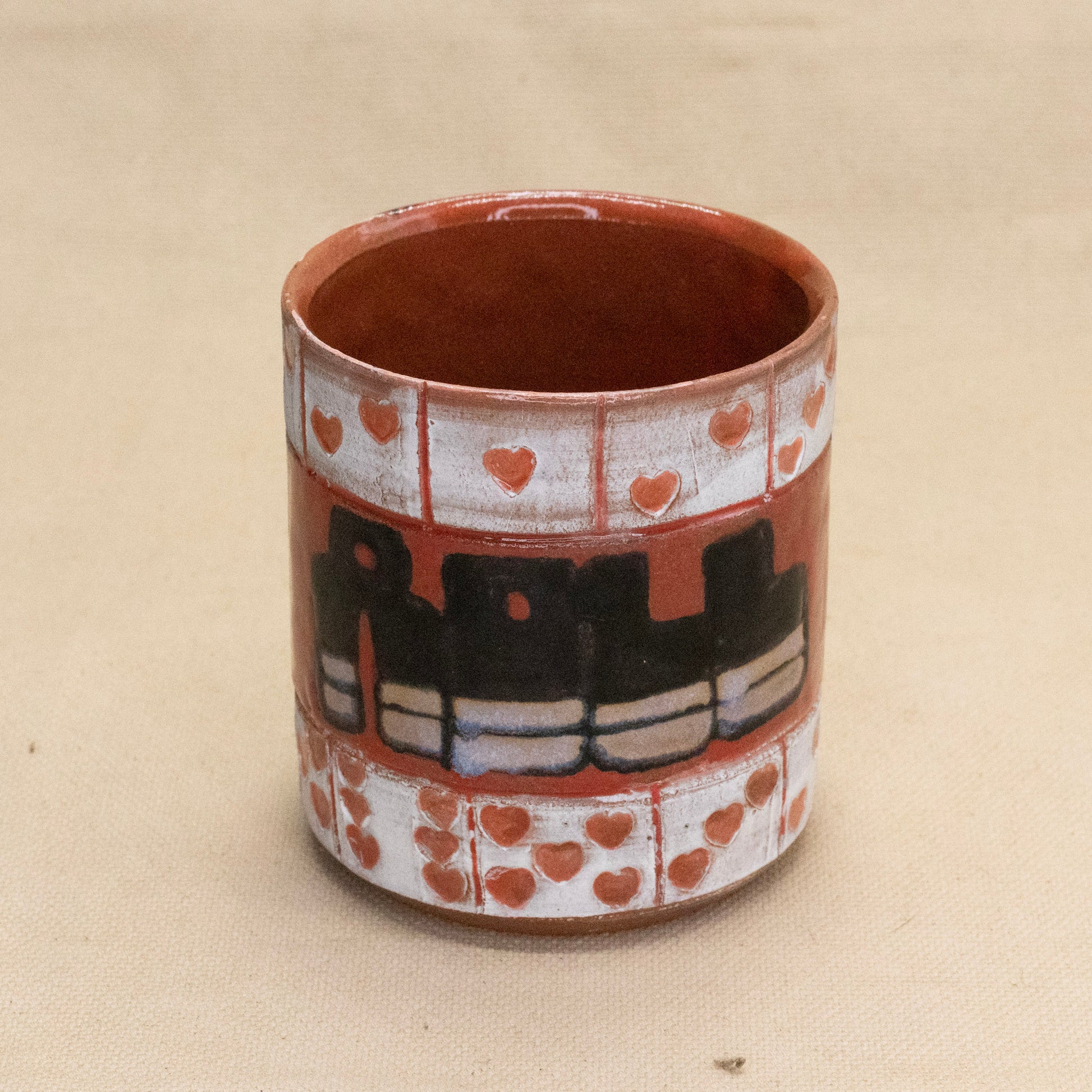 Lettering with glazes - it's flooding with love and care. Microwave and dishwasher safe, holds 12 oz.
