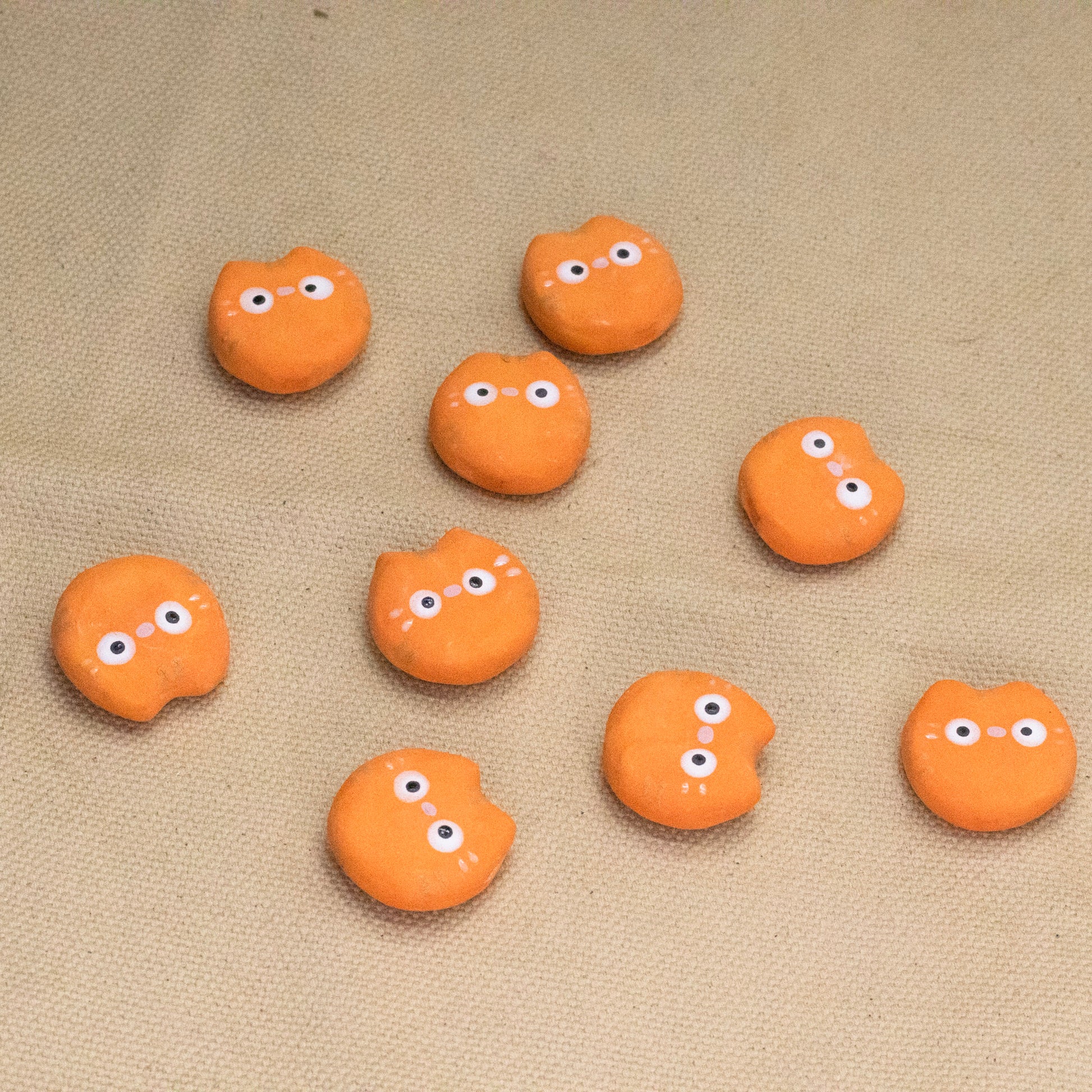 Handsculpted and painted orange tabby magnets. Sold individually, each measures approx. 1" tall and 1" wide.