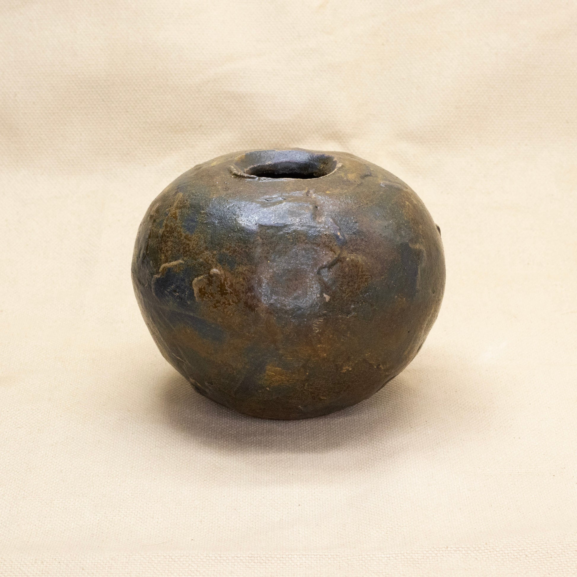 Thrown and altered orb. Measures 4" tall and 4.5" in diameter.