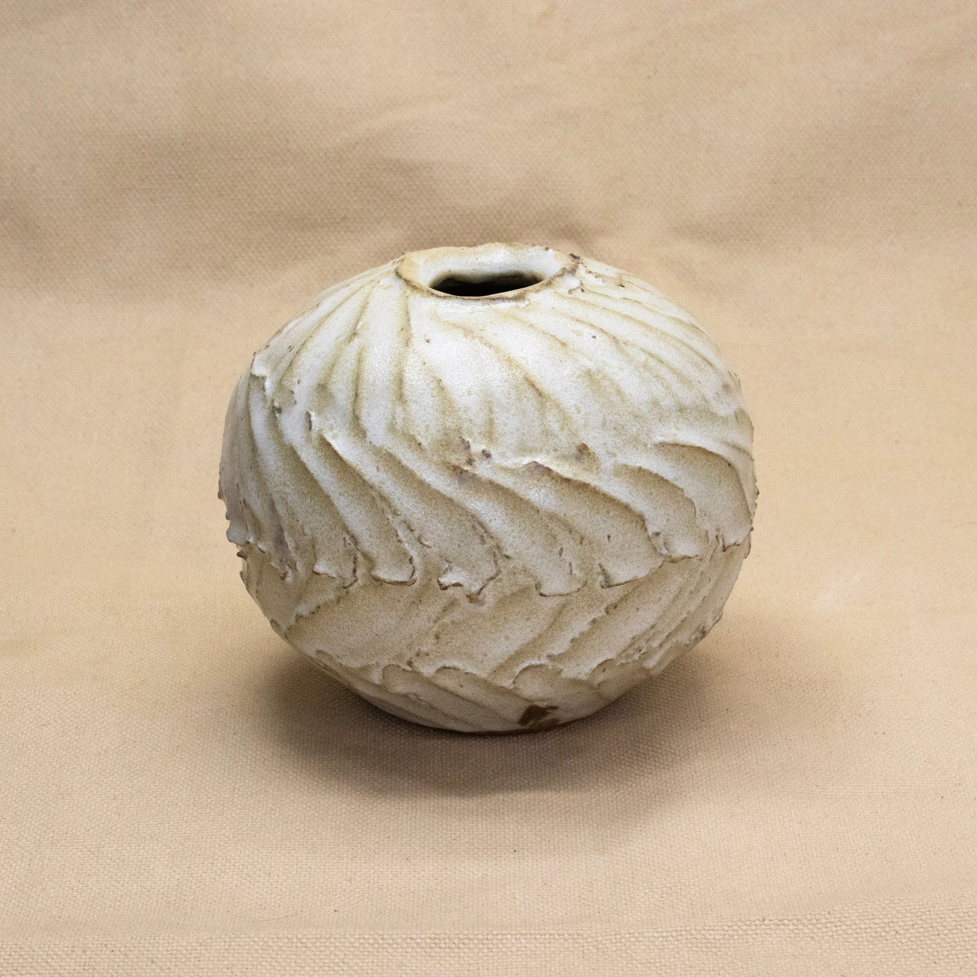 Thrown and altered orb. Measures 4.25" tall and 5" in diameter.