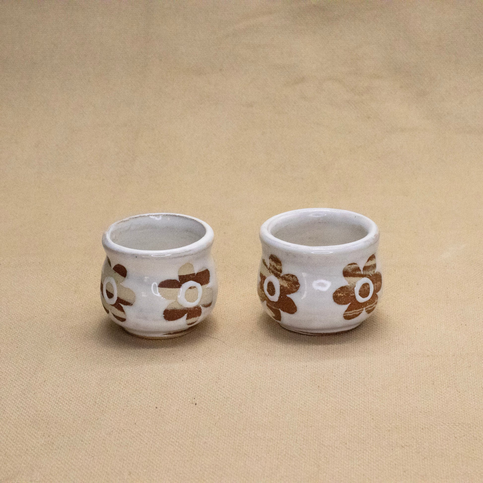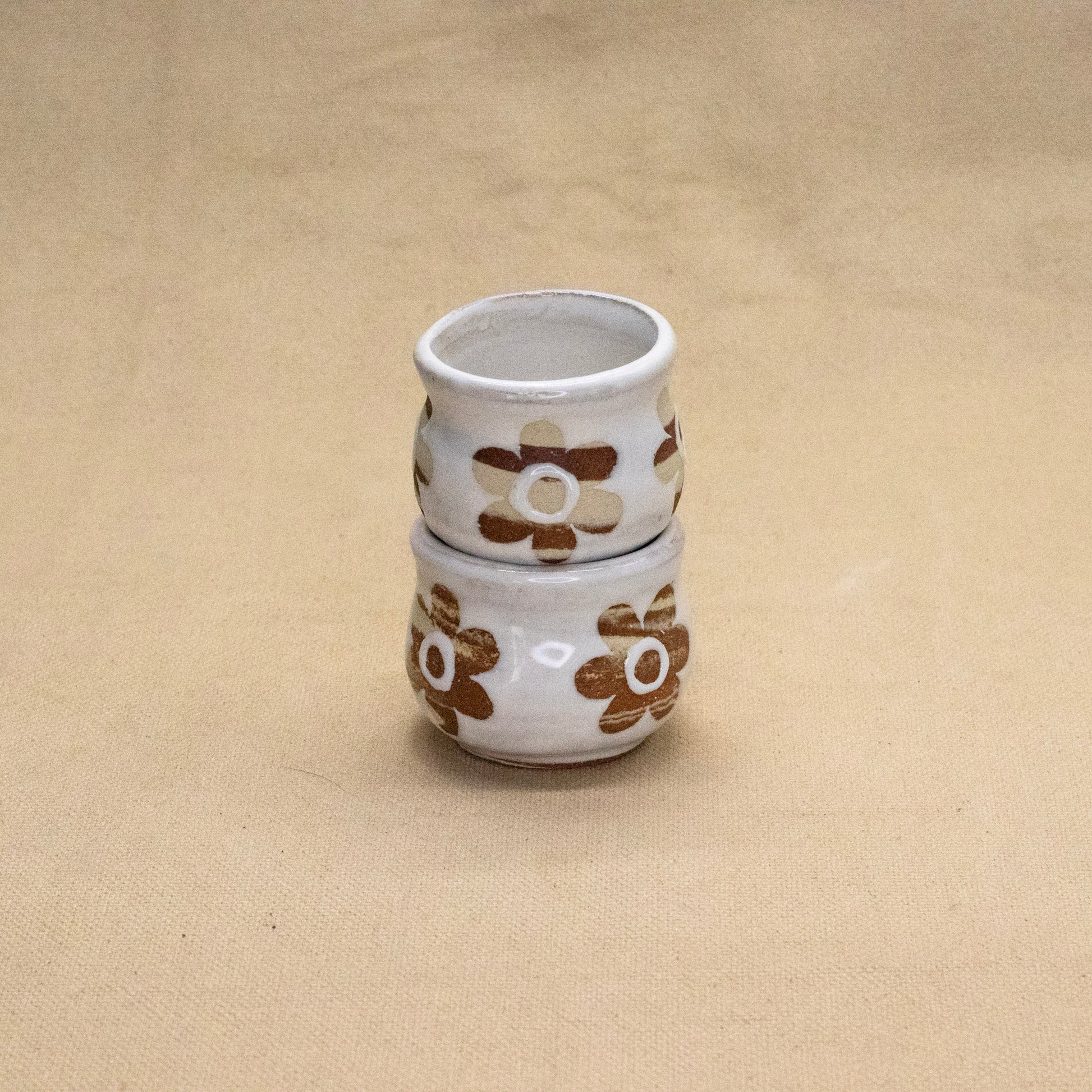 A pair of copitas with a flower motif! Microwave and dishwasher safe. Each copita holds approx. 2 oz.