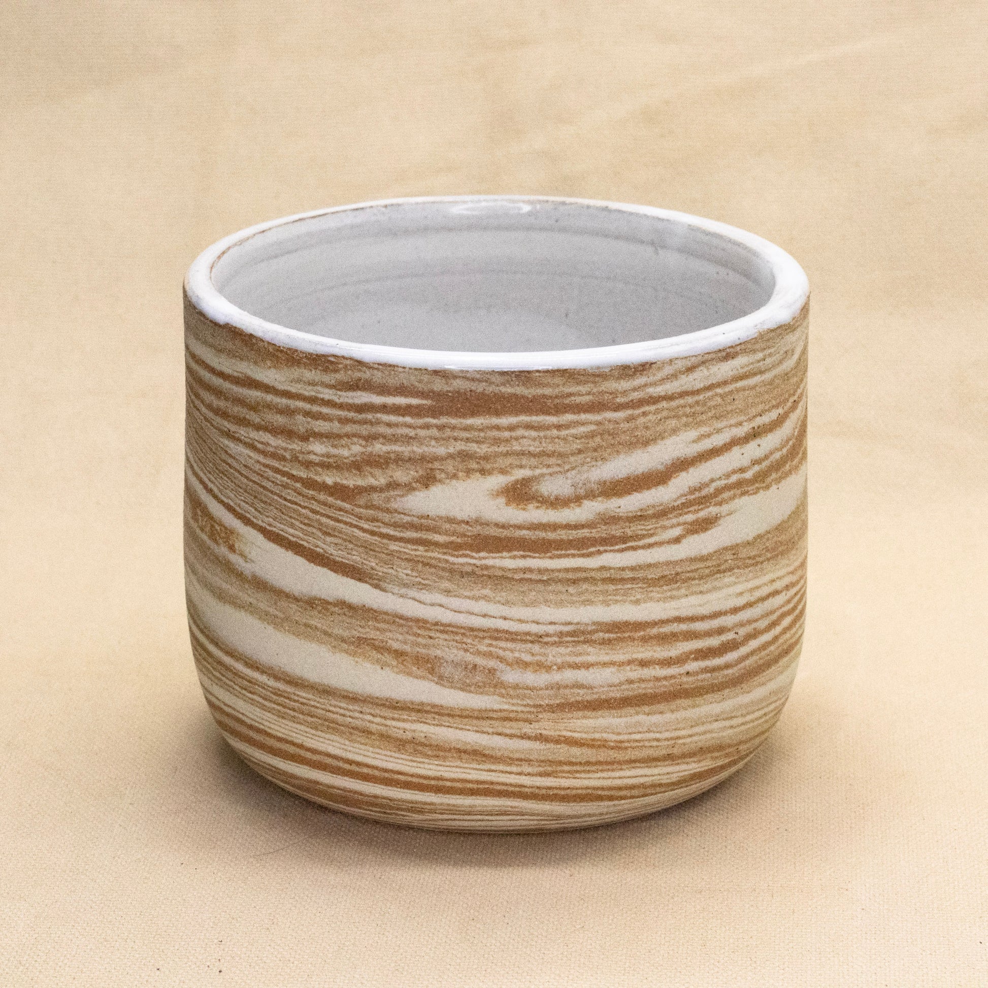 A medium sized marbled planter! Measures 6" in diameter and 5" hole. Pre-drilled with a drainage hole.
