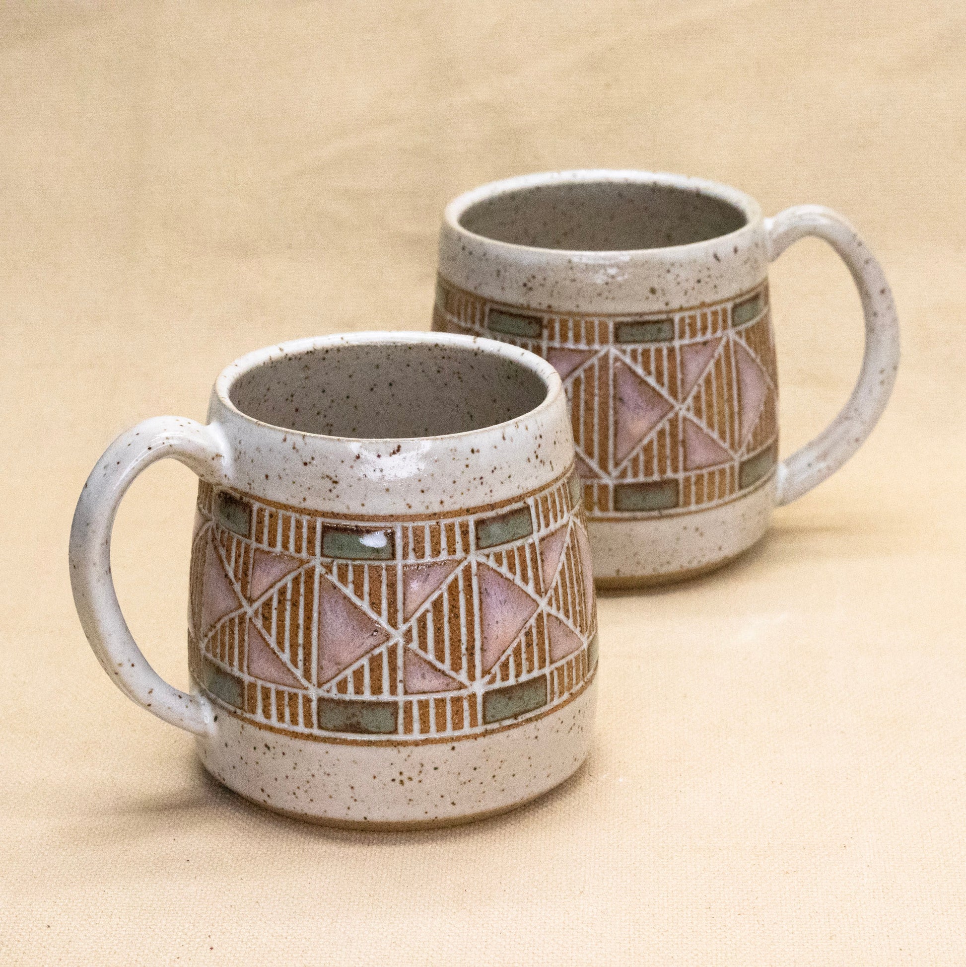 Quilt Mug (Rhubarb/Sage) by Sanctuary Ceramics