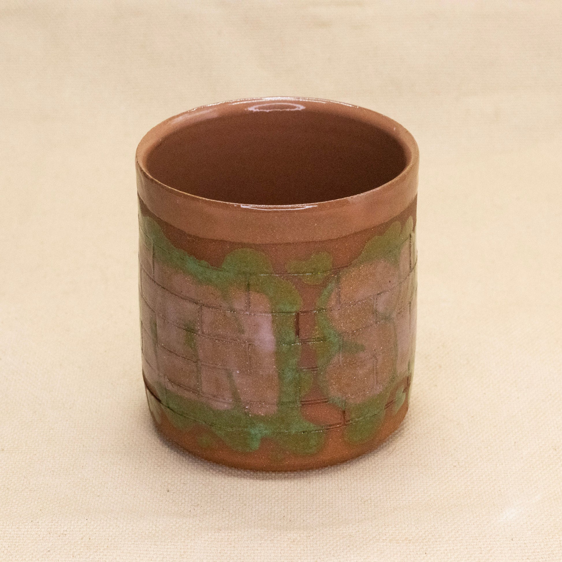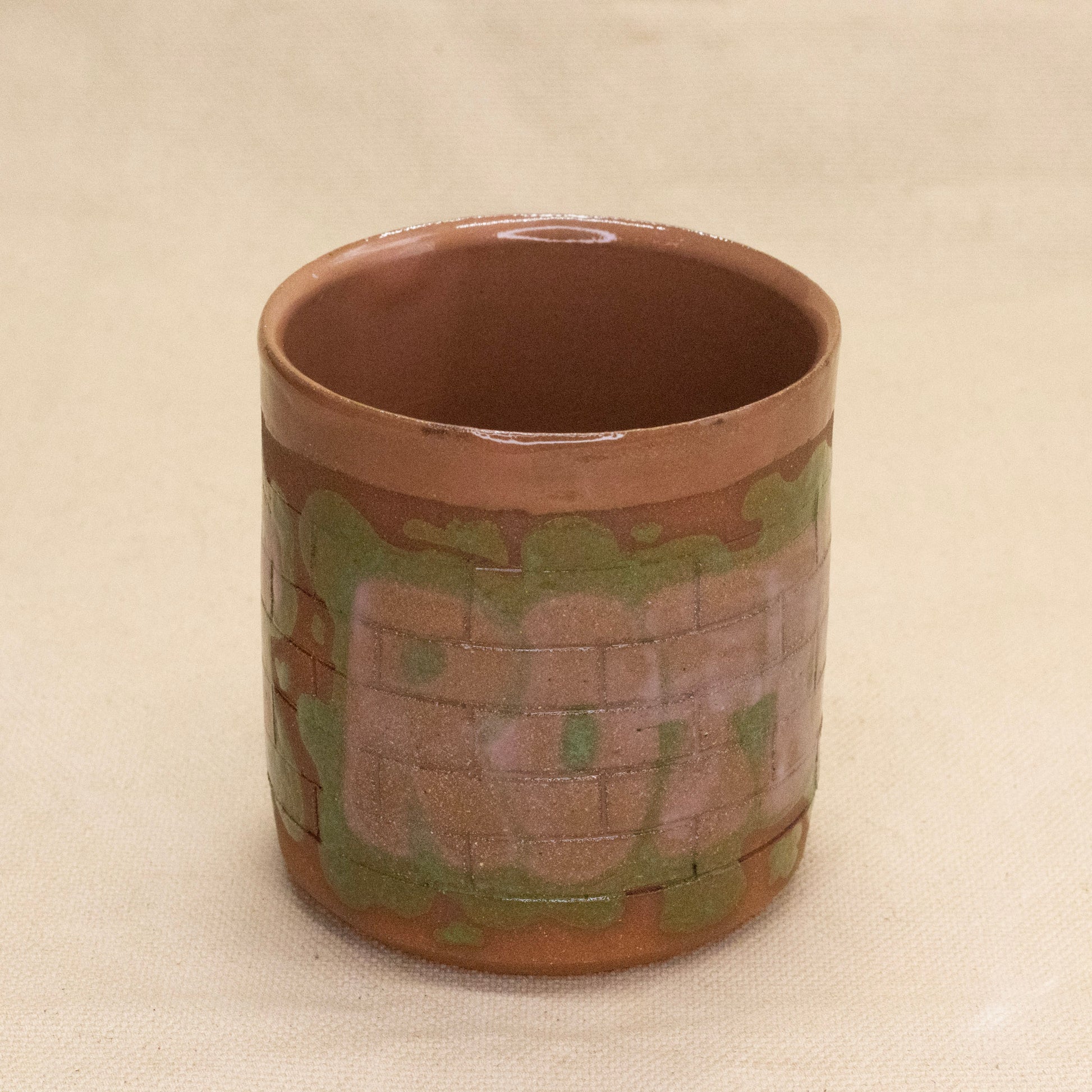 Tumbler with brick texture with graffiti reading "rotten sweet". Dishwasher safe, holds 16 oz.