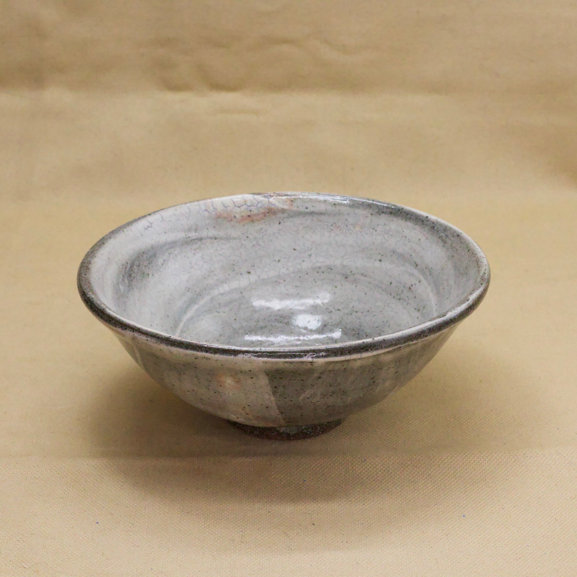 White slip brushed over an iron rich stoneware, clear glaze, high fire reduction.