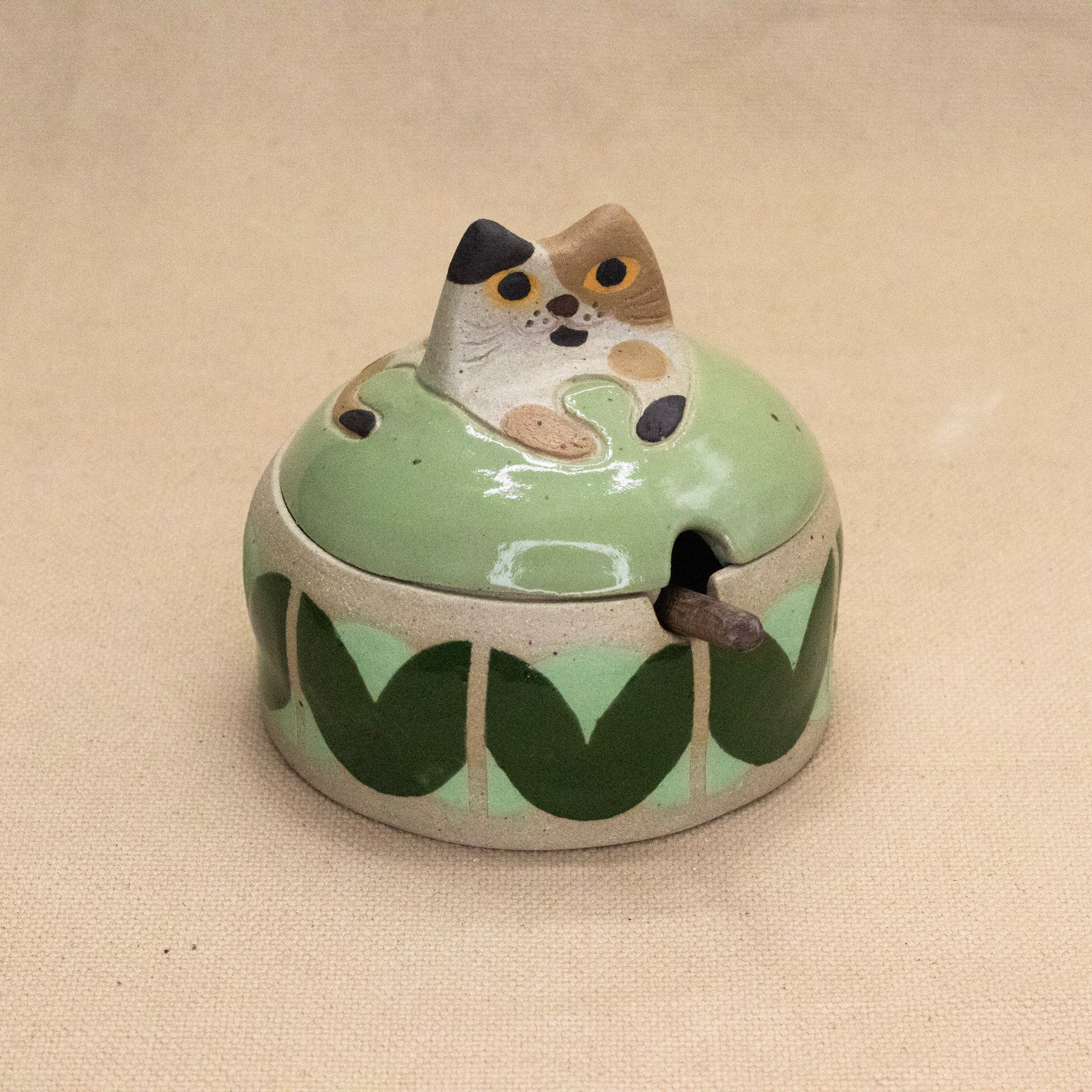 Each jar includes a wooden spoon! Perfect for salt, sugar, or other seasonings you use frequently. Sizes vary between 2.75-3.75" in diameter. Each jar sold separately. Handwash recommended.