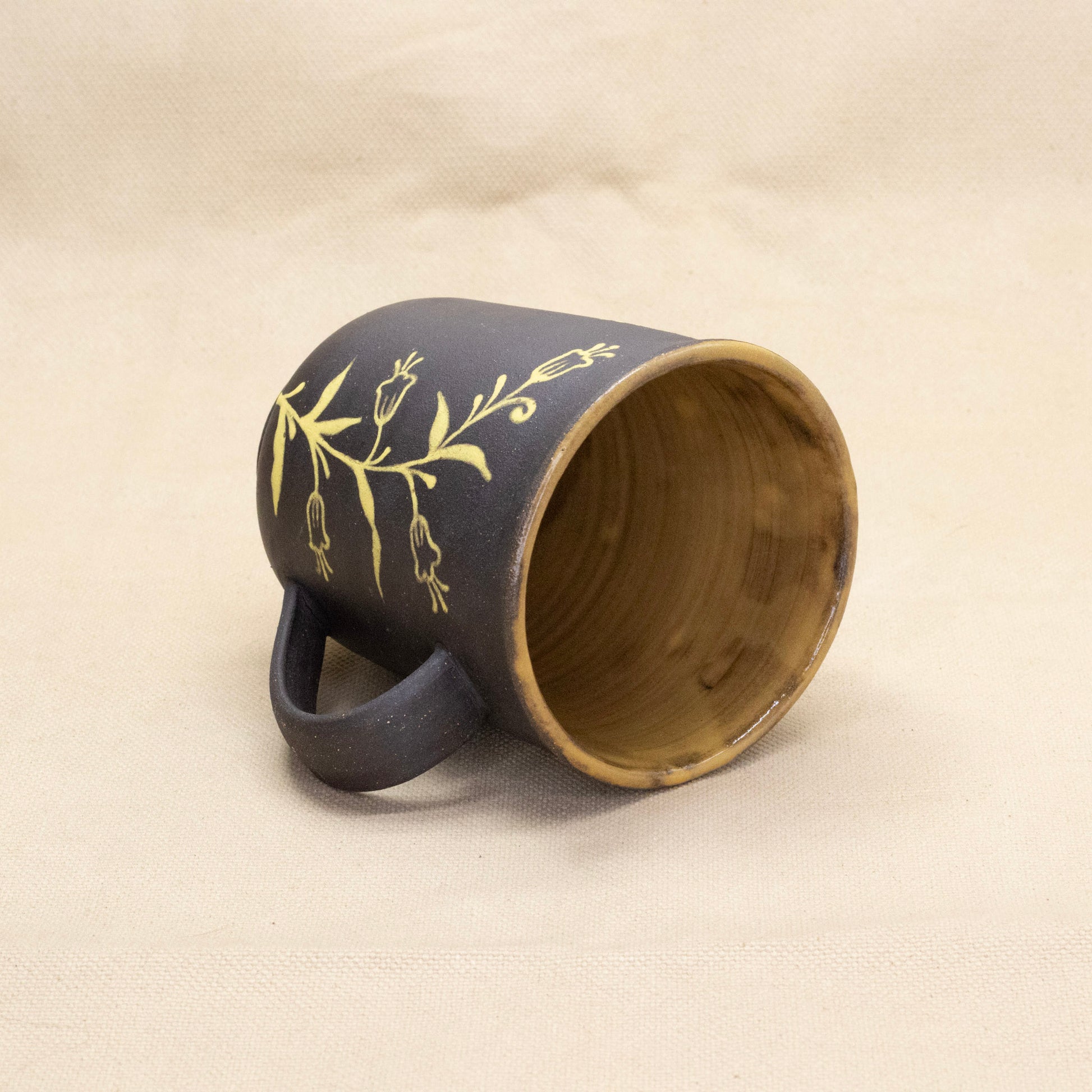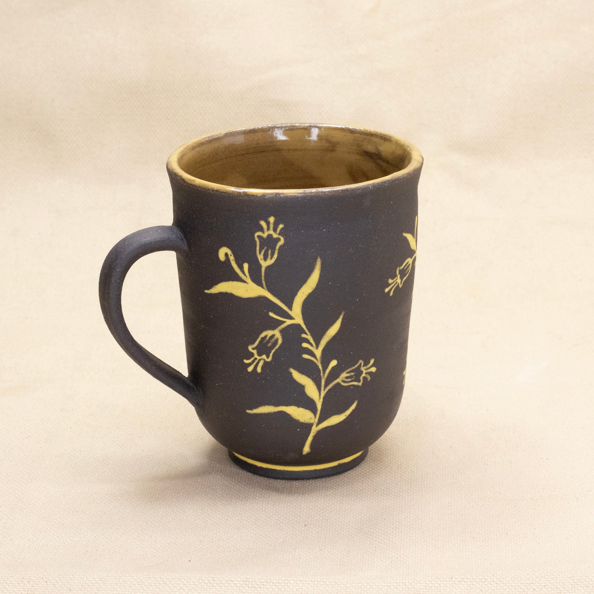 Carefully handpainted with underglaze. Microwave and dishwasher safe. Holds 16 oz.